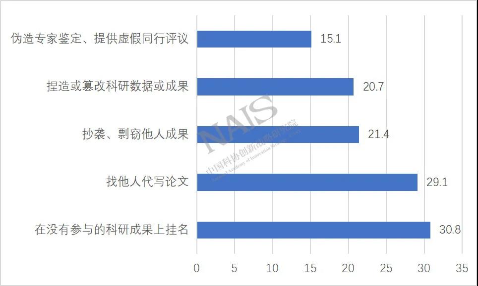 图2 科技工作者反映其身边存在的学术不端行为(单位:%)