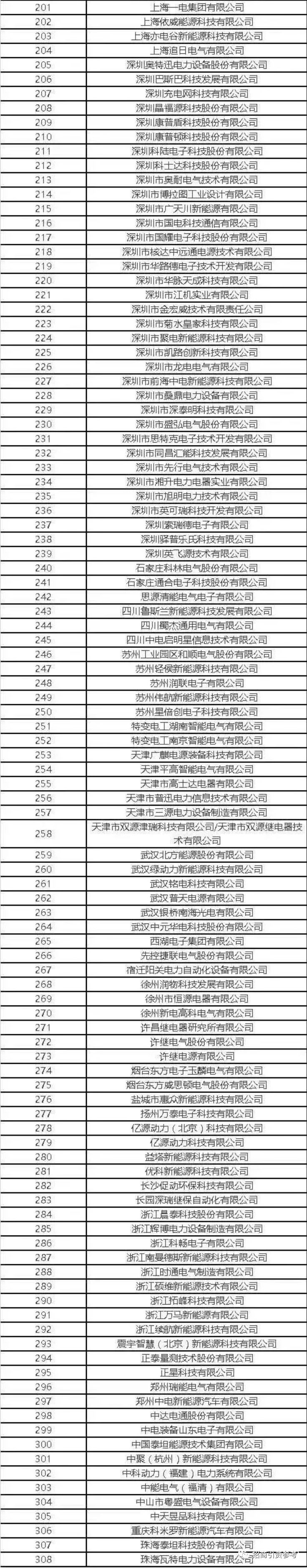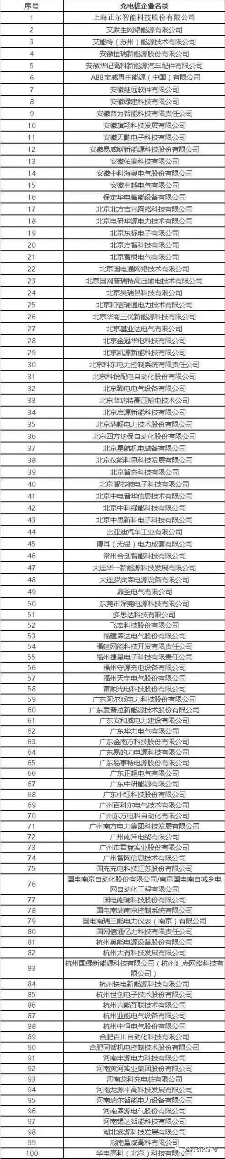 部分新能源汽车充电站企业名录(308家)