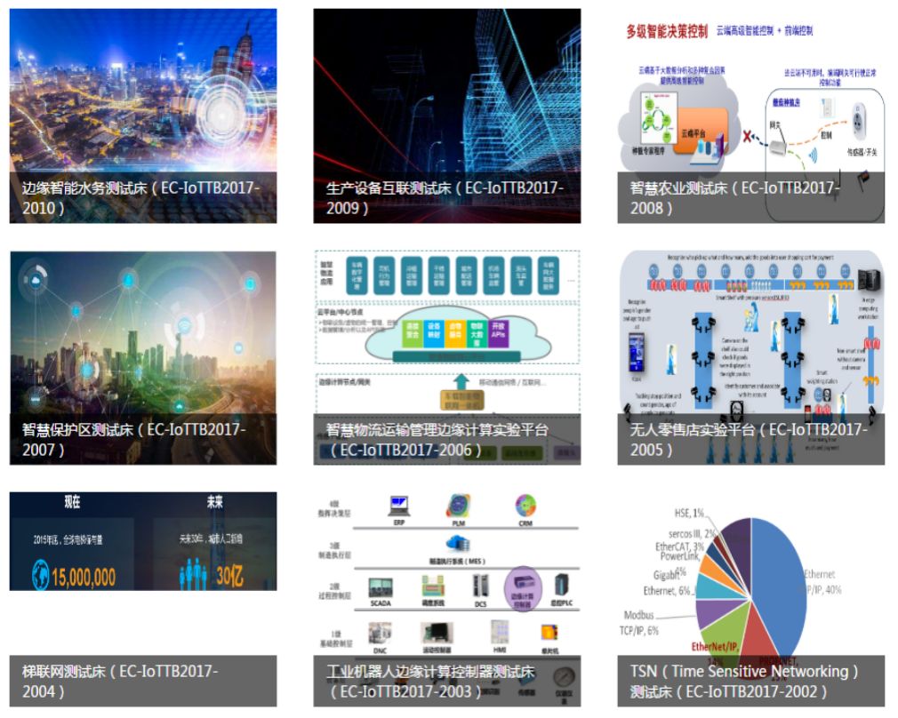 工业互联网测试床为工业互联网的各种创新提供空间,为进入市场前的新技术、新应用、新产品、新服务和新过程等的有效性和可行性进行严格试验与检测。测试床是利用科学理论、计算工具和新技术进行严格、透明和可复制测试的平台,一般用来描述实验研究和新产品开发平台和环境。国内测试床案例如图5所示。