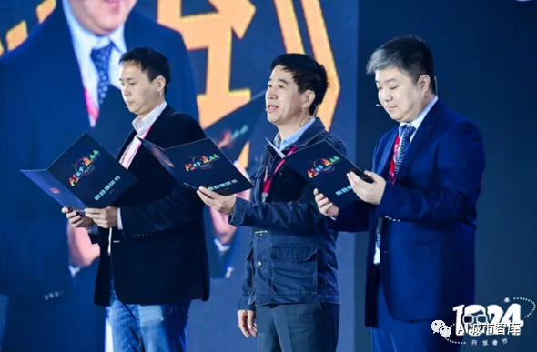 合肥市春芽残疾人互助协会时艳侠会长、微手语创始人兼CEO 钟世雄 、心智互动 COO 黄凯、ThoughtWorks 心声中国物联网总监朱晨,共同宣读《人工智能助力公益事业发展倡议书》