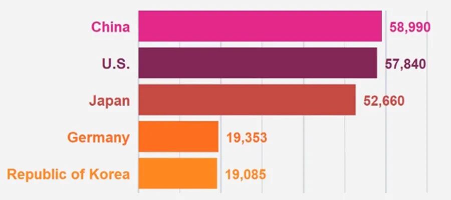 世界知识产权组织(WIPO)周二称,中国2019年成为世界上国际专利申请最多的国家,将美国挤下自从40多年前该全球体系建立以来就一直稳坐的头把交椅。WIPO称,去年中国提交了58,990项专利申请,超过美国提交的57,840项。全世界的总申请数为26.58万件,同比增长5%,创历史新高。中国的华为连续第三年成为专利申请量最高的企业。前50家企业当中,中日韩占到6成以上,呈现出亚洲企业引领技术创新的格局。