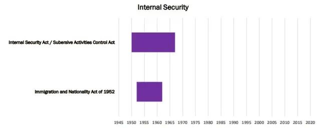 最后一套工具与内部安全有关。似乎国内安全措施比关注美国境外活动的项目更具争议性。这类项目中有许多反映了对XXXX在美国影响的关注,并展示了在竞争加剧的时期公民自由受到的压力。这些措施中的许多一方面反映了美国左翼组织和移民之间的联系,另一方面是苏联间谍和XXXX意识形态之间的真实信念。冷战时期国内安全经验的教训之一是,除了谨慎的国内安全措施之外,其他措施很可能是不切实际的措施,尽管存在合法的内部安全威胁,但美国内部安全计划引发的反弹表明,它们可能走得太远了。