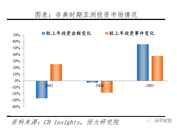 1、新冠肺炎疫情叠加经济下行、金融危机,此次危机影响或远超2003年非典和2015年塞卡(Zika)时期。私募股权投资一直是初创企业重要的资金来源,经济下行、全球资本市场剧烈波动以及疫情全球蔓延加重投资端恐慌情绪,投资机构在受灾当年和下一年将提高投资条件、收紧投资窗口、减少投资行为,创新企业可能缺乏重要的资金来源。从2003年非典时期来看,受灾最严重的亚洲地区私募股权市场受非典影响较大,2003年疫情当年市场投资金额较2002年下降27%,直至2005年投资行为有所恢复。2015年塞卡疫情表现出类似情况,受灾最严重的南美地区2016年私募股权市场投资金额较2015年下降49%,直至2017年恢复。从此次疫情的高传染性和全球经济情况来看,预计2020年全球风投市场投资可能大幅收缩,直到2021年才能有所好转。