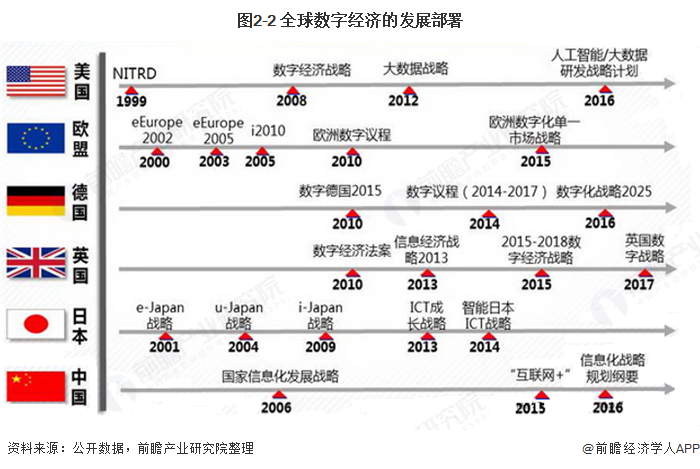 数字经济是基于新一代信息技术,孕育全新的商业模式和经济活动,并对传统经济进行渗透补充和转型升级。美国早在1999年成立了NITRD(Networking and Information Technology Research and Development),布局了计算机、网络和软件的科研计划,中国也于2006年发布了《国家信息化发展战略》,把推动数字经济发展作为国家战略,不断推动数字经济发展。