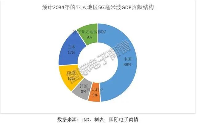 尽管整体产业起步较晚,但中国5G毫米波产业逐步迎头赶上,有望开启一个巨大的增量市场。去年底产业咨询公司TMG预计,到2034年在中国使用毫米波频段所带来的经济受益将产生约1040亿美元的效应,这大约占亚太地区毫米波频段预估贡献值(预计将达2120亿美元)的一半。