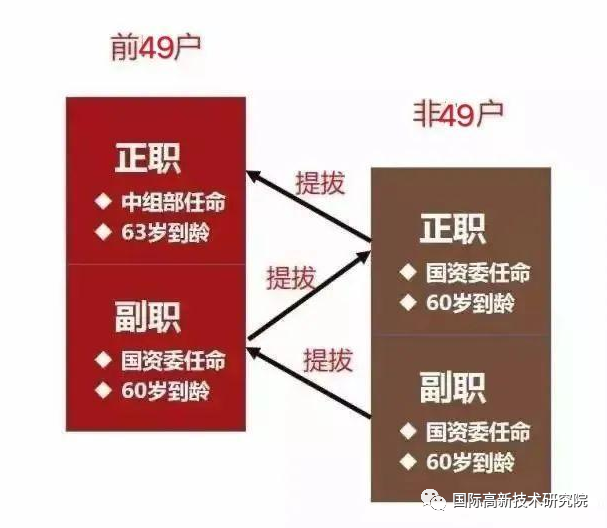 49户的副职领导,以及非49户的正职、副职领导均由国资委党委研究决定,前者归口在国资委企干一局,后者归口在企干二局。