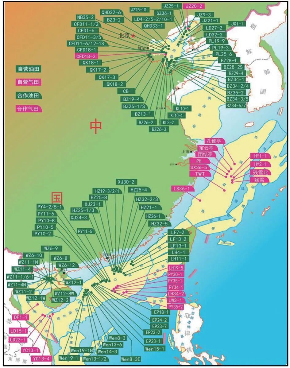 图2 中国近海油气田分布