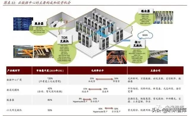 • 云基建:云计算及数据中心基础设施产业链。网速增长和存储成本下降在过去几 年使能了云计算服务的快速发展。云计算应用深入到政府、金融、工业、交通、 物流、医疗健康等传统行业,云平台已演变为典型的新型信息基础设施。云计算 平台的需求也孕育了产业链上愈发壮大的市场空间,从服务器、交换机、数通光模块到数据中心,都将迎来成长。