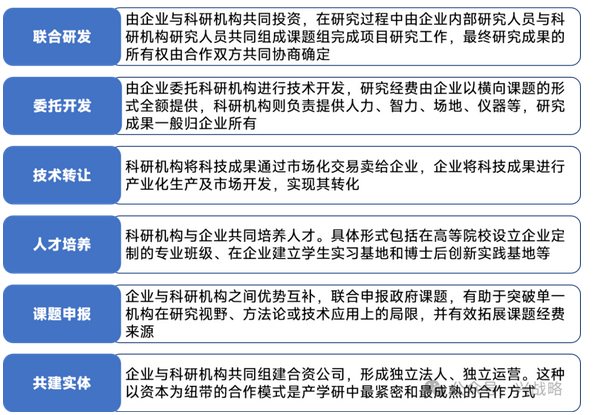 当面对一项不成熟的技术时,企业可以组织其研发部门与高校、科研院所一同合作进行设计、实验和生产。该模式下,由企业与学研机构共同投资,在研究过程中由企业内部研究人员与学研机构研究人员共同组成课题组完成项目研究工作,最终研究成果的所有权由合作双方协商确定。