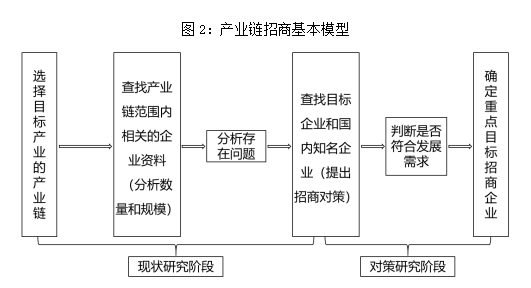 传统招商主要是基于土地、税收优惠等传统的吸引企业入驻政策。而产业链招商以产业链分析为基础,基于产业链发展需求,做实提升产业链。产业链招商需要深入分析目标产业的产业链及其存在的问题,查找目标企业和国内知名企业,实施有针对性、目的性的招商(见图2)。
