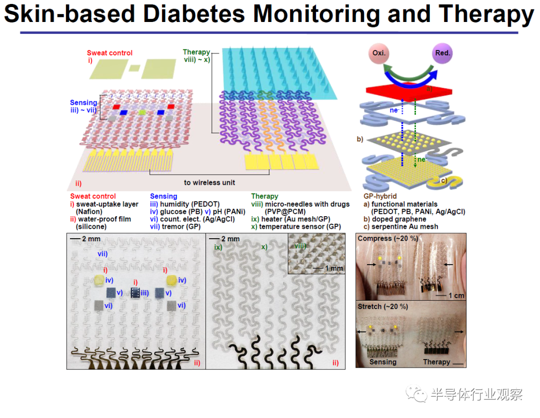 生物芯片的应用领域将会是传统半导体芯片没有涉足的地方。首先,快速化学指标检测将是一个重要的应用领域。随着现代人对于健康重视程度的提升,对于各种生化指标的持续监测需求量也在快速提升,使用传统实验室方法去做化学分析的速度很难跟上人群的需求,而生物芯片可以大大降低这些指标检测的难度并提升检测速度。举例来说,这次新冠疫情对于病毒检测的需求就大大超出了传统实验室的能力,而英国初创公司DNANudge推出的基于生物芯片的解决方案可以把精确检测新冠病毒时间降低到90分钟,能解决新冠检测吞吐量的燃眉之急,并因此获得了英国政府超过一亿英镑的订单。其次,可穿戴设备上的持续生化信号检测也将满足人们对于慢病管理等领域的需求。例如,使用生物芯片检测泪液内的血糖指数可以帮助糖尿病患者更好地管理血糖,同时生物芯片也可以通过检测汗液中的尿酸水平来帮助痛风患者。
