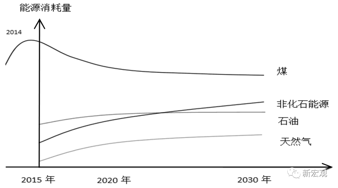“十四五”时期,随着我国煤炭等能源消耗的下降,我国将总体处于污染物排放的“拐点”后阶段,主要大气污染物叠加总量的峰值极有可能在2020年左右出现,预计到2030年前碳排放总量将可以达峰(见图9、图10)。