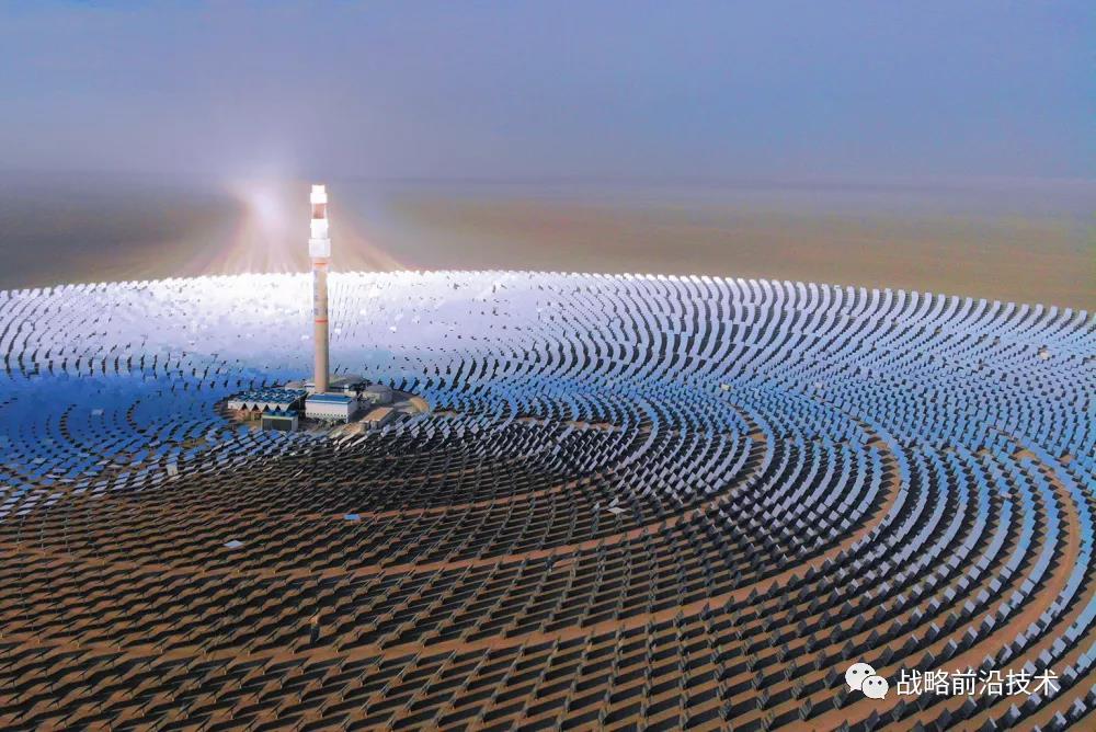 太阳能光热发电被认为是具备成为基础负荷电源潜力的新兴能源应用技术,敦煌 100兆瓦熔盐塔式光热电站借助良好的电网基础优势,将新能源不断输往全国各地(2月24日摄)马希平摄 / 本刊