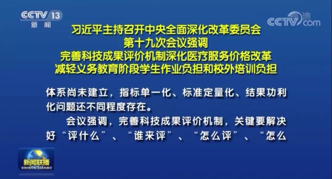5月21日下午,中央全面深化改革委员会第十九次会议审议通过了《关于完善科技成果评价机制的指导意见》等5个文件。
