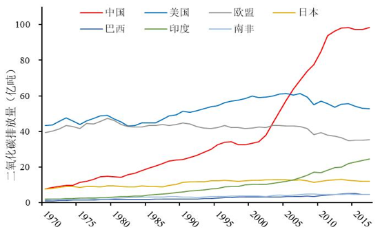 图1 世界主要国家二氧化碳排放总量图(数据来源:GCP)