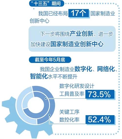 据了解,“十三五”期间,我国已经布局了17个国家制造业创新中心,下一步将围绕产业创新,进一步加快建设国家制造业创新中心。发挥地方企业积极性,按照市场化、国际化的原则,使我国制造业创新体系更加完备,创新能力进一步增强。