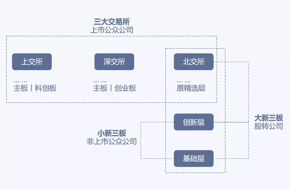 (大新三板、小新三板、三大交易所关系图解)