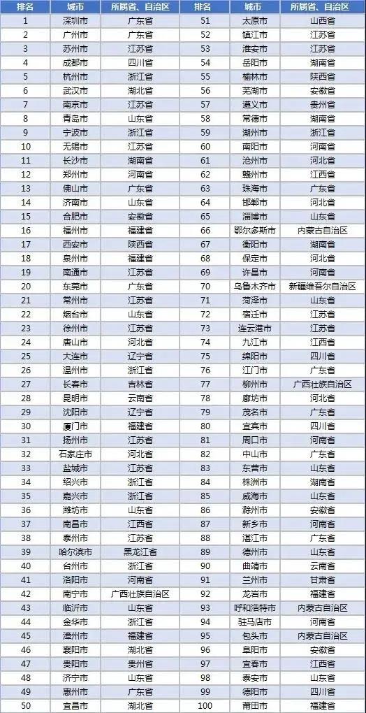 2021中国百强市排行榜