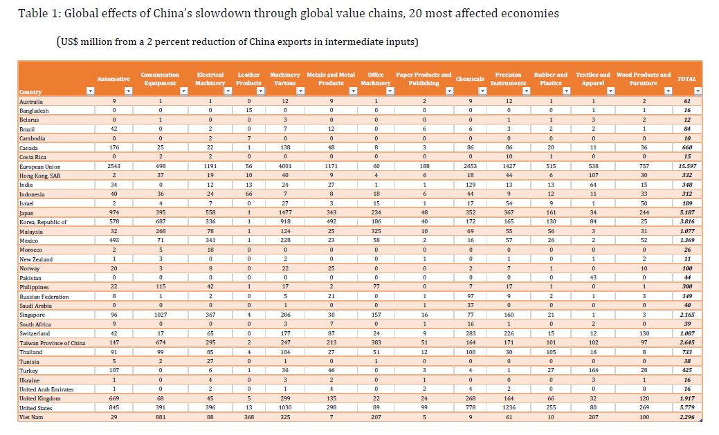 联合国贸发会议的最新报告显示,仅中国供应链中断,受疫情影响最大的经济体或是欧盟(机械、汽车和化学制品)、美国(机械、汽车和精密仪器)、日本(机械和汽车)、韩国(机械和通信设备)、中国台湾地区(通信设备和办公设备)以及越南(通信设备)。