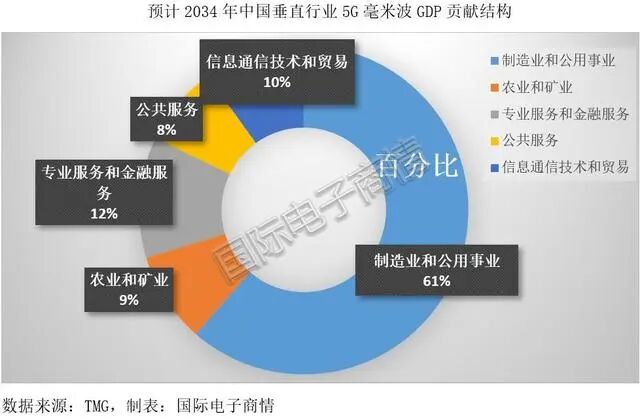 若具体到细分的垂直行业,制造业和水电等公用事业的贡献度最大,占贡献总数的62%;其次是专业服务和金融服务,占12%;信息通信和贸易,占10%;然后是农业和矿业,最后是公共服务。长远来看,随着5G毫米波的使用不断增长,这种经济优势加上5G毫米波的众多潜在工业应用,将为垂直行业对GDP的重大影响做出贡献。