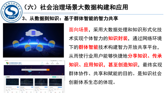 从数据到知识。我们要面向场景,采用大数据处理和知识形式化技术实现个体智力的知识封装,通过网络环境下的群体智能技术构建智力开放共享平台,实现群体协作、共享和赋能的目的。从社会效益来看,目前一体化实战指挥系统整合了50余个业务系统、上万路监控视频,数据知识双轮驱动的治理模式,填补了公安领域海量多源异构数据融合治理的空白,在禁毒、维稳、打黑、追逃、重大活动安保等方面取得显著效果。