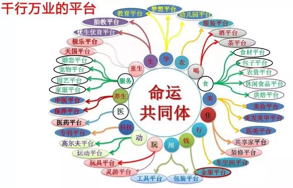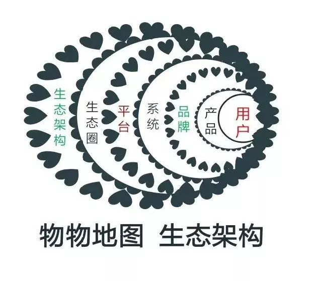 如图所示:生态圈是互联网时代的产物,典型代表有腾讯、小米、阿里巴巴;生态架构是物联网时代的产物,典型代表有合其家【物物地图】