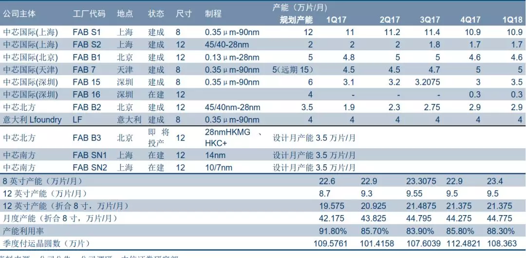 图:中芯国际工厂及产能统计(来源:中信证券)
