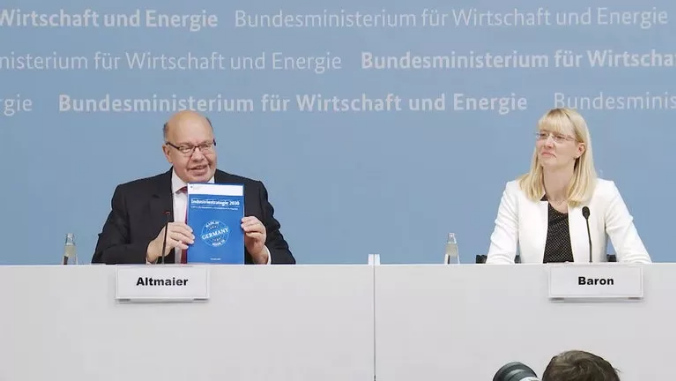 德国联邦经济和能源部部长阿尔特迈尔在新闻发布会上介绍《工业战略2030》