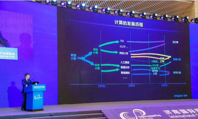 12月27日,以“超算无界、智创未来”为主题的2019国际超级计算产业博览会在济南召开。中国工程院院士、浪潮集团首席科学家王恩东在大会发表《智慧计算 未来动力》主题演讲。王恩东指出,人工智能正在驱动前所未有的社会变革,人工智能计算作为主要计算形态,正在成为未来的核心动力。