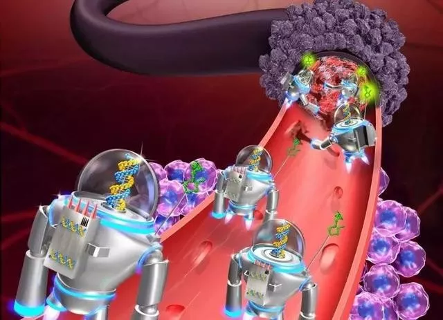 第一步,巡察:在你的血管里放进500万个纳米机器人,这些纳米机器人能够24小时在人体内巡逻,一旦发现病灶就立即锁定,确认后释放所携带的药物!
