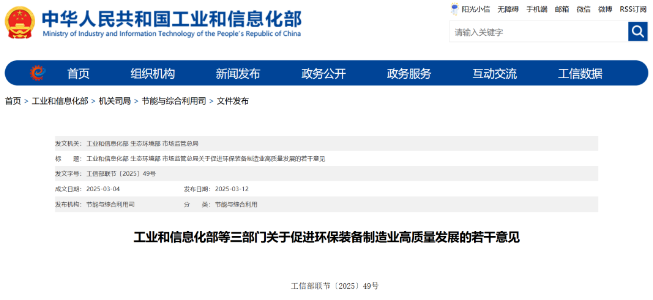 3月12日,工信部等三部门发布的《关于促进环保装备制造业高质量发展的若干意见》指出,力争到2027年,先进技术装备市场占有率显著提升,标准体系更加健全,重点领域技术装备产业链“短板”基本补齐,“长板”技术装备形成国内主导、国外走出去的优势格局,构建较为完备的环保装备供给体系。