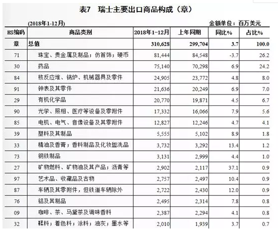 3. 瑞士制造业中的“隐形冠军”瑞士制造业中还有很多这样的“隐形冠军”,从瑞士出口商品构成图中可以看到,瑞士每年出口大量的零配件,这些零配件很多都是“隐形冠军”企业生产的。同时,我们从表格中还可以看到,2018年,钟表出口只占瑞士出口总额的7%,这说明瑞士可不单单是“钟表王国”。