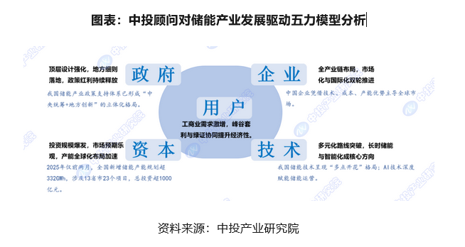 以下是运用中投顾问原创的五要素模型,从五个角度对我国储能产业发展驱动因素的详细分析。