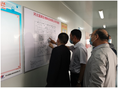 河北国高生物科技有限公司董事长赵玉乾,总经理胡玉凤,销售总监廖文成等进行了热情的接待。随后王仕军书记一行考察参观了国高生物的研发中心、实验中心、产品中心、管理中心等部门。