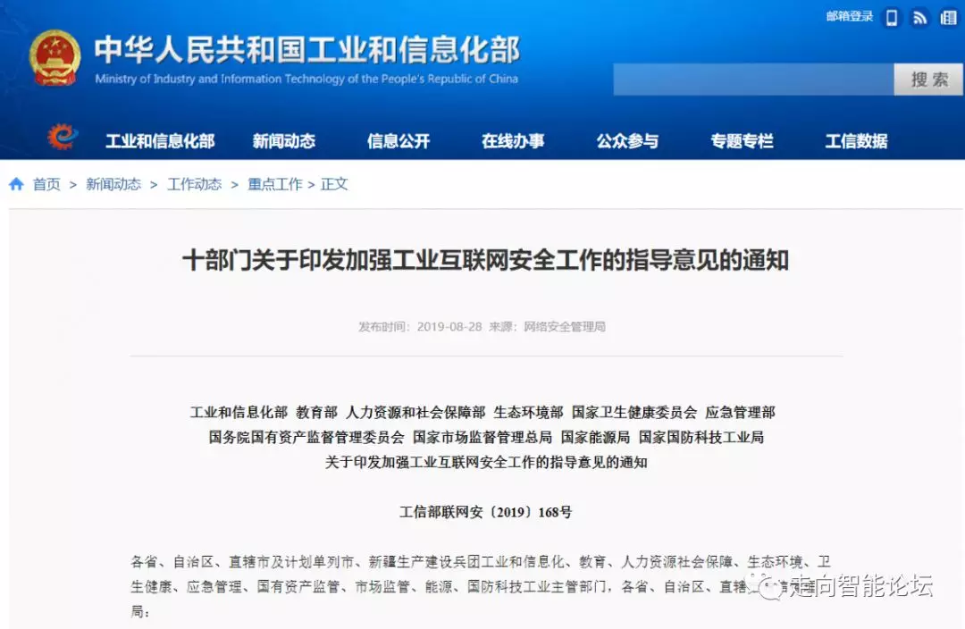 关于印发加强工业互联网安全工作的指导意见的通知