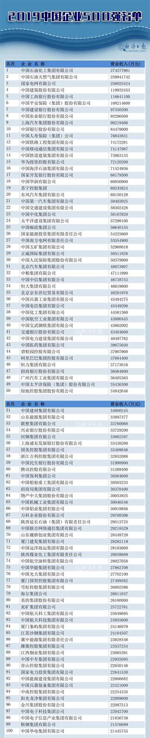 中国企业500强榜单揭晓,令你骄傲的中国企业都在这里!